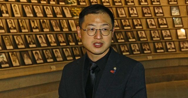 김상욱 국민의힘 의원이 지난 2월 24일 광주 북구 운정동 국립5·18민주묘지 유영봉안소에서 오월 열사를 바라보고 있다. / 뉴스1