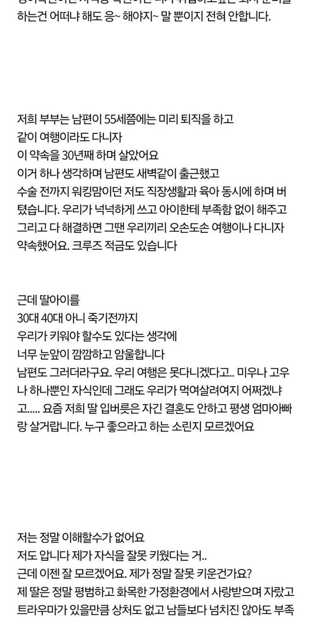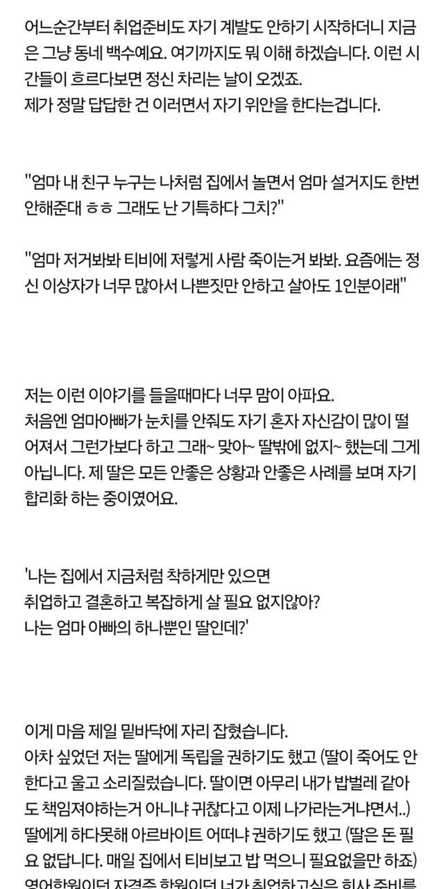 취업 안하는 딸때문에 죽을맛이라는 엄마