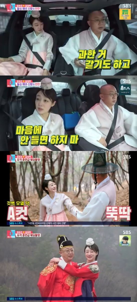 이날 방송에서 최여진♥김재욱은 빗속을 뚫고 어디론가 향했다. 특히 두 사람 모두 한복 풀세팅을 하고 있었다. 알고보니 결혼 40일을 앞두고 웨딩 촬영을 하는 날이었던 것.