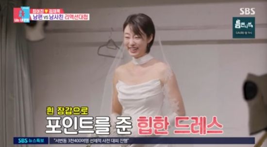 (엑스포츠뉴스 오수정 기자) '동상이몽2'에서 최여진이 웨딩드레스를 입어봤다.