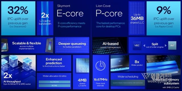 첫째, 차세대 아키텍처다. P-core(Performance Core)와 E-core(Efficient Core) 모두 새롭게 설계됐으며, 최대 24코어(8P+16E) 구성에 5.7GHz 터보 부스트까지 끌어올렸다. 특히 단일 스레드 성능뿐만 아니라, 멀티태스킹, 에너지 효율까지 전방위적으로 개선됐다.