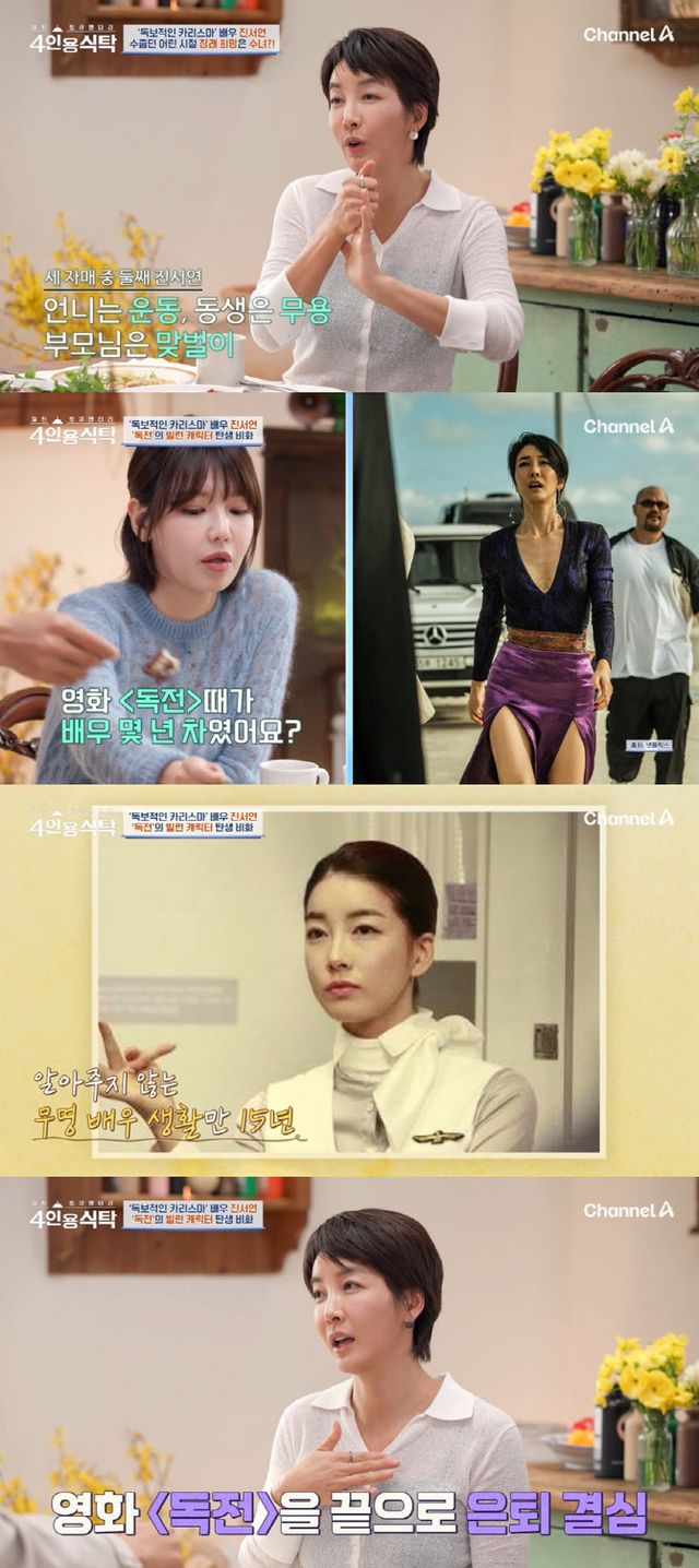 지난 28일 방송된 채널A ‘절친 토큐멘터리 4인용 식탁’(이하 ‘4인용식탁’)에는 진서연이 절친 음문석, 최수영과 속마음 토크를 나눴다.