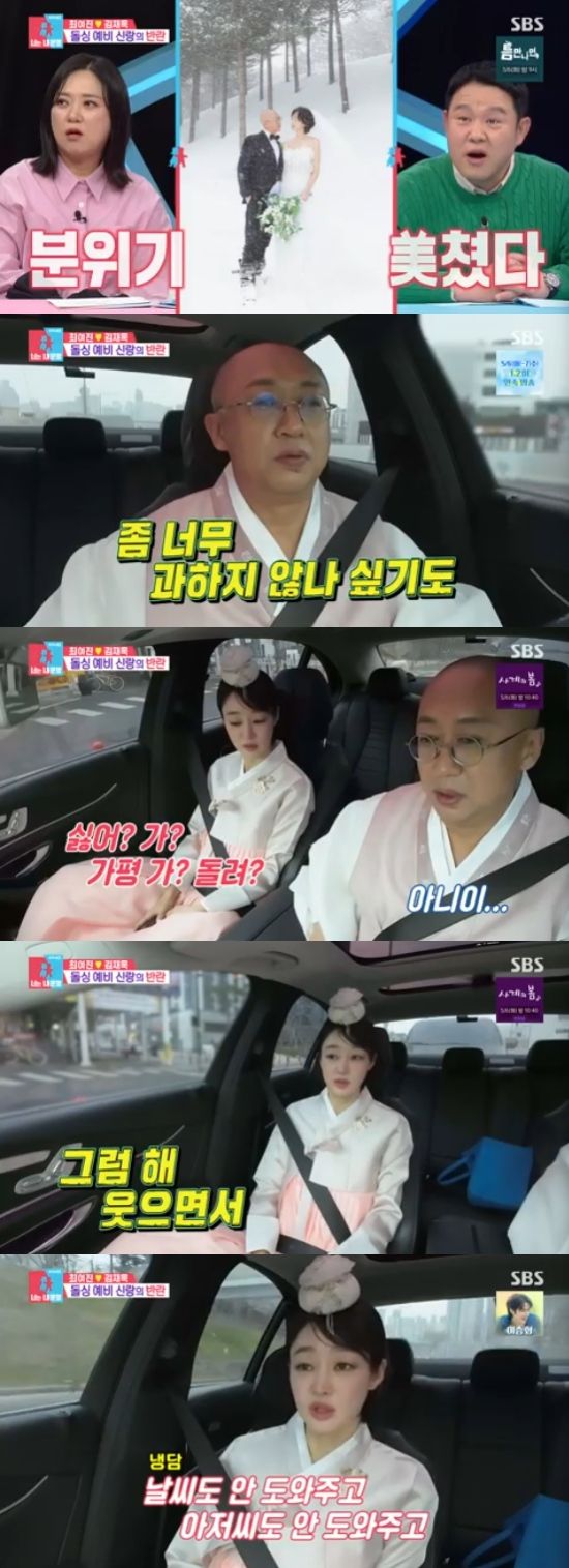그럼에도 김재욱은 "촬영을 안 하겠다는 건 아닌데, 너무 과하지 않나 싶기도 하다는 것"이라고 했고, 최여진은 "이미 하기로 했는데 어떡하냐. (안 할 거 아니면) 웃으면서 하라"고 받아쳤다.