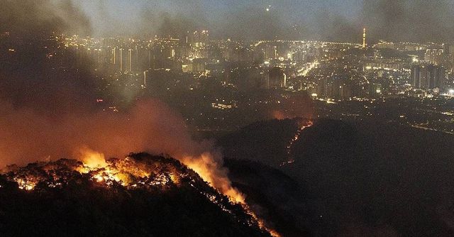 지난 28일 오후 2시 1분께 대구 북구 노곡동 함지산에서 발생한 산불이 야간에도 확산하고 있다 / 연합뉴스