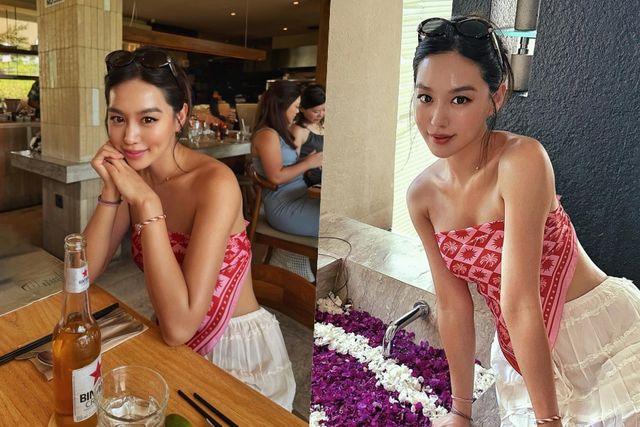 공개된 사진 속 김희정은 발리 여행 중 한 식당을 찾은 모습이다. 스카프를 반으로 접어 톱으로 입은 김희정은 군살 없이 탄탄한 몸매로 눈길을 사로잡았다.