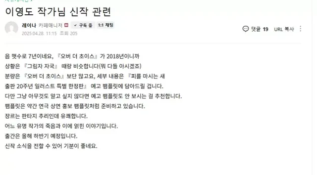 유일하게 작품 전권 보유한 작가인데이번에도 기대되네요 ㅋ독마새는 힘들더라도 이렇게 간간히 나와줬으면...