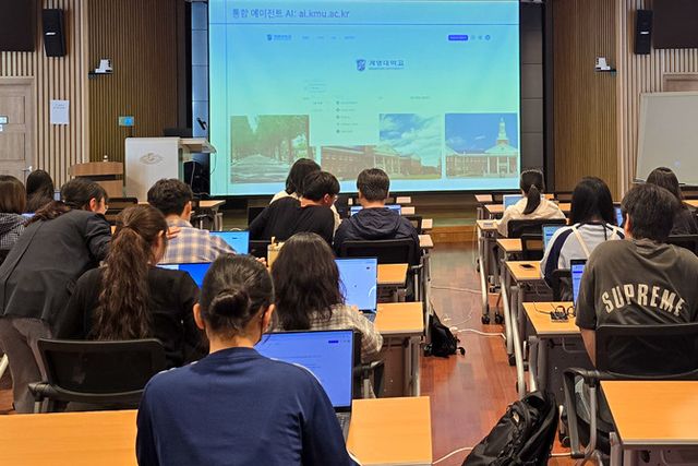 계명대학교 학생들이 KT의 멀티 AI 플랫폼을 활용해 학습하는 모습. ⓒ KT