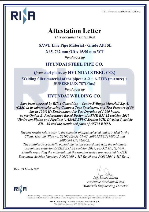 이번 RINA-CSM 테스트 통과는 현대제철이 국내 철강업계 중에서 수소 인프라 관련 강재 분야에 글로벌 경쟁력을 갖춘 기업임을 보여주는 상징적인 사례다.