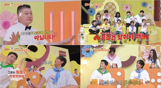 이날 자녀들이 참여하는 깜짝 코너에는 사진을 보고 누구인지 맞히는 문제가 출제됐다. 신현준의 어린시절 사진 속 얼굴과 예준이가 똑 닮은 붕어빵 부자 모습을 뽐내 놀라움을 자아냈고, 이후 공개된 강호동의 중학교 졸업사진에 예준이는 "태윤이 형 아니냐"며 김병현의 첫째 아들과 강호동을 닮은꼴이라고 주장했다.