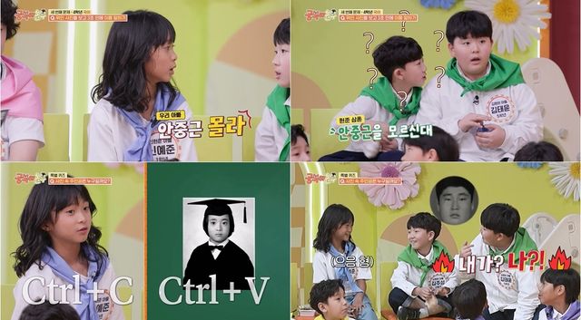 앞서 가희가 유관순, 김정태가 이순신을 맞히며 쾌재를 부르자 김병현과 신현준은 약속이나 한 듯 입을 모아 "아는 사람 다 나왔어"라며 밑밥을 깔았고, 이에 예준이의 얼굴에 먹구름이 드리우자 김병현의 둘째 아들 주성이는 "아냐 안중근이 나올 수도 있어"라며 예준이를 위로했다.