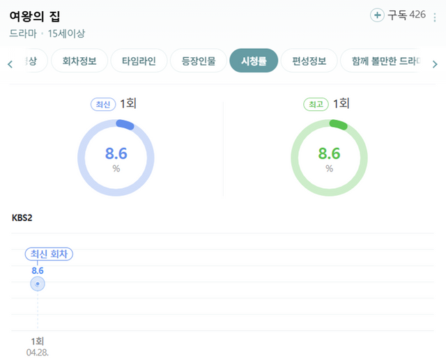 KBS2 새 일일드라마 '여왕의 집' 1회 시청률 / 네이버