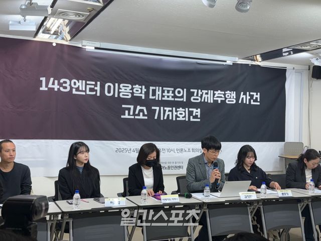 29일 서울 중구 한국프레스센터 언론노조 회의실에서 143엔터테인먼트(이하 143엔터) 대표 B의 강제추행 사건에 대한 고소 기자회견을 열었다. 자리에는 피해자 어머니를 포함해 문화연대 김재상 사무차장, 법무법인 정인 문효정 변호사, 한빛센터 김영민 센터장, 전 143엔터 A&R팀장 허유정 ‘정치하는엄마들’ 이민경 활동가 총 6명이 참석했다.