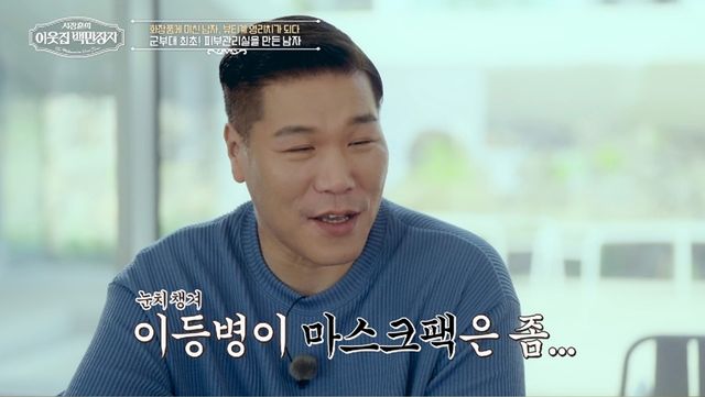 또 군대에서도 화장품 마니아의 삶을 포기할 수 없어 "관물대를 화장대로 만들었다. 그게 부대에 소문이 나서 휴가 앞둔 병장들이 피부 상담을 해오기 시작했다"라고 고백한다. 김한균이 "밤에는 씻고 마스크팩을 했다"라고 하자, 서장훈은 "이등병이 마스크팩하고 누워있으면 혼나지 않냐..."라며 놀라움을 감추지 못한다.