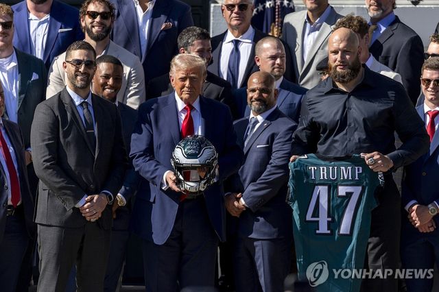트럼프 대통령은 지난 2월 필라델피아가 캔자스시티 치프스를 꺾고 슈퍼볼을 차지하는 장면을 경기장에서 관전했다. 당시 그는 대선에서 맞붙었던 카멜라 해리스 민주당 후보를 지지했던 팝스타 테일러 스위프트를 조롱하기도 했다. 스위프트는 남자친구인 트래비스 켈시(캔자스시티)를 응원하러 경기장을 찾았다. 그는 백악관 초청 행사에서 당시를 떠올리며 "나와 스위프트가 함께 그 경기에 있었다. (필라델피아가 승리한) 결과는 어땠는지 다들 알 것"라고 말했다.