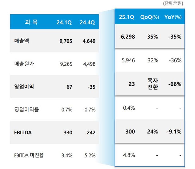 광물 가격 안정화도 흑자 전환에 일조했다. 영국 원자재정보업체 패스트마켓츠에 따르면 올해 1분기 말 기준 수산화리튬 가격은 kg당 9.5달러로 지난해 4분기 말과 동일하다. 니켈 가격은 지난해 4분기 kg당 15.1달러에서 올해 1분기 kg당 15.7달러로 소폭 오른 것으로 집계됐다. 이와 같은 영향으로 회사는 1분기 재고평가충당금 307억원을 환입했다.