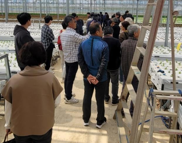 지난 25일에는 교육생들이 김제시와 부안군에 위치한 스마트팜 시설하우스와 육묘장을 방문해 선도농가의 데이터 활용 ICT 환경제어 기술과 수경재배 모종관리 방법을 전수 받는 현장학습을 실시했다.