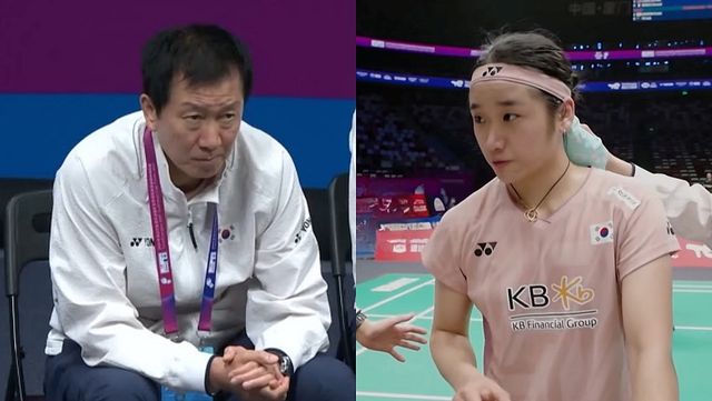 28일 수디르만컵 조별리그 2차전에 나선 박주봉 감독과 안세영 / 유튜브 'SBS 뉴스'
