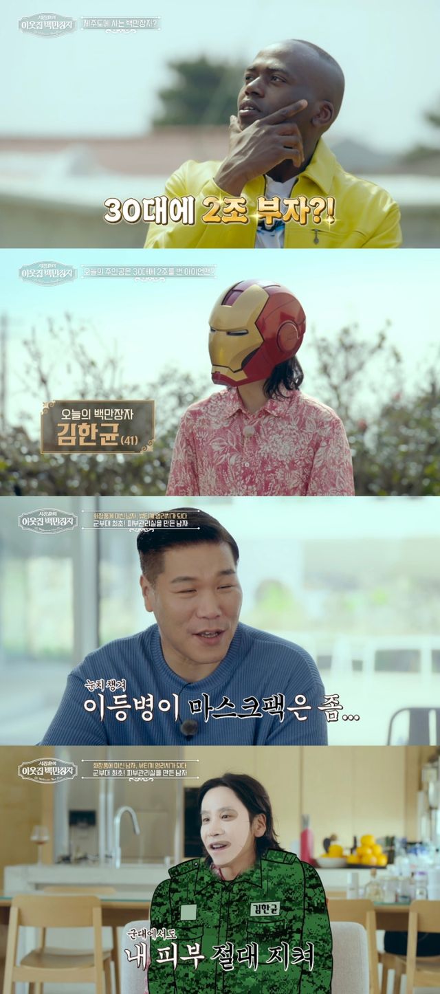 28살에 처음으로 화장품 브랜드를 창업한 김한균은 2018년 글로벌 경제 매거진이 뽑은 ‘2030 파워 리더’에 오르며 주목받았다. 서장훈은 김한균에 대해 “이분이 30대에 2조를 벌었다는 소문이 있다”며 관심과 궁금증을 드러낸다. 김한균은 ‘이웃집 백만장자’를 통해 ‘2조 부자’에 관한 진실을 밝힌다.