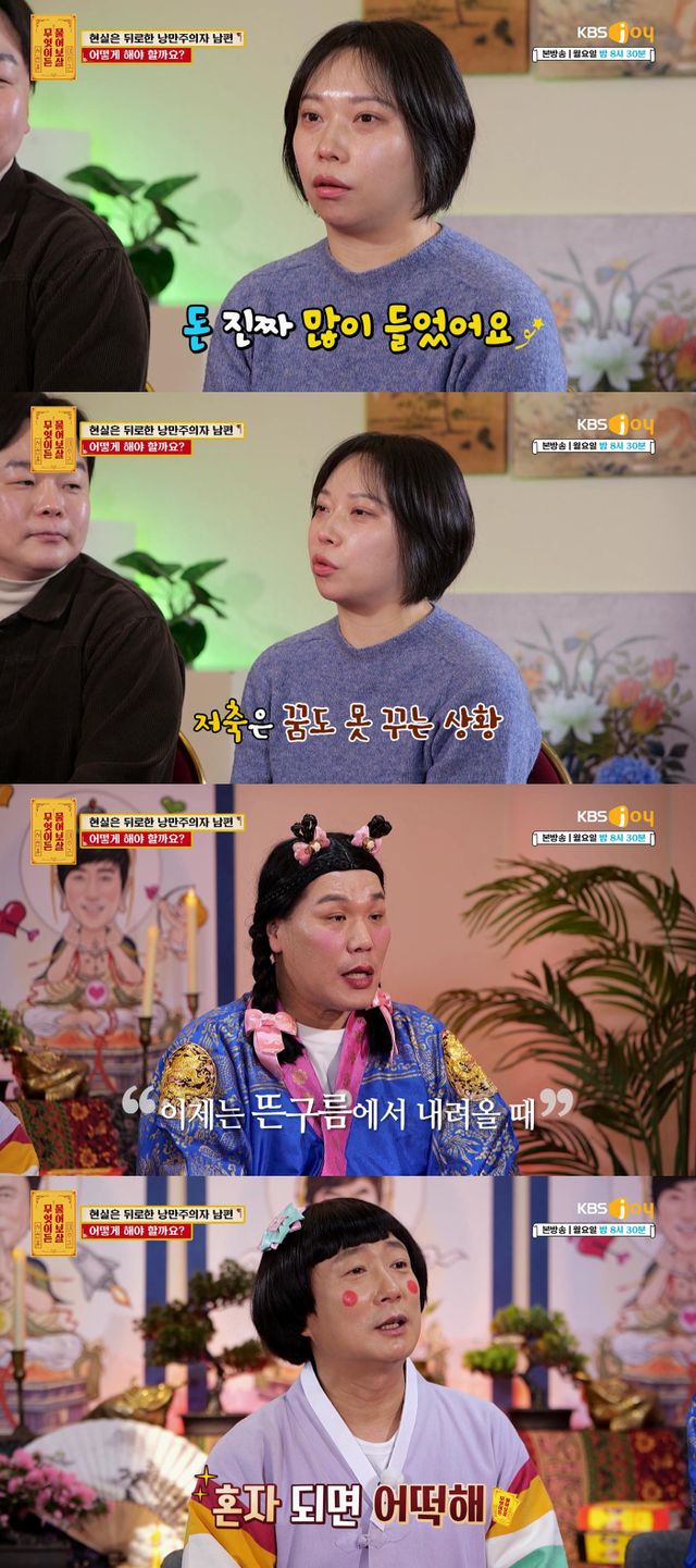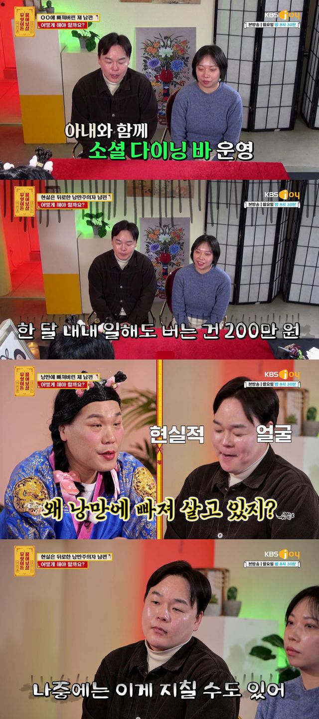28일 방송된 KBS Joy '무엇이든 물어보살' 314회에는 현실은 뒤로한 낭만주의자 남편이 고민이라는 사연자가 등장했다.