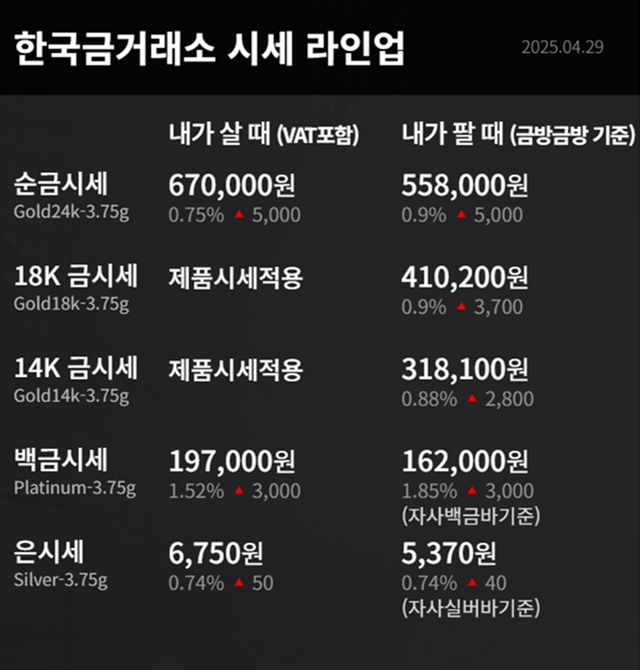 순금(24K) : 매입가 67만 원 / 매도가 55만 8000원