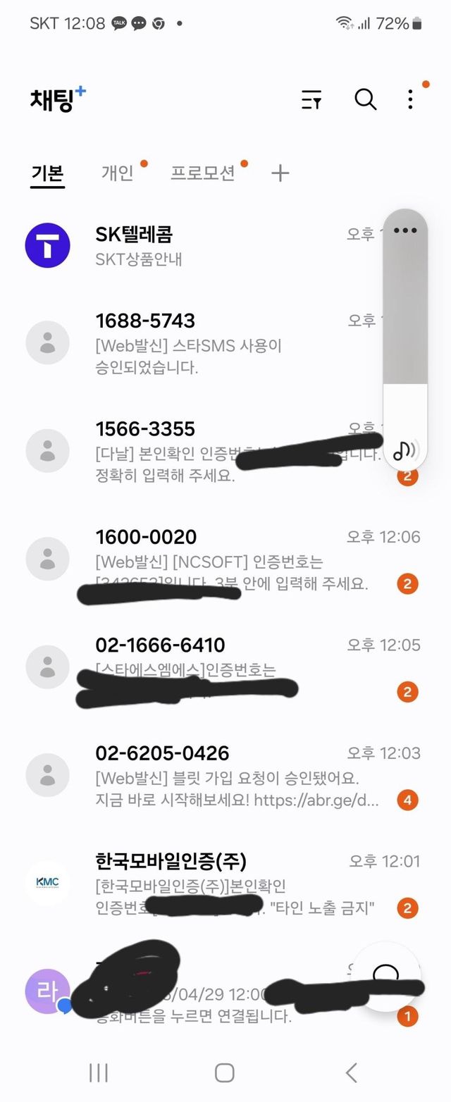 동시 다발적으로 10군데 넘게 갑자기 와서 폰 정지 함카톡이 살아 있어서 어디 가입했다고 카톡이 온다고