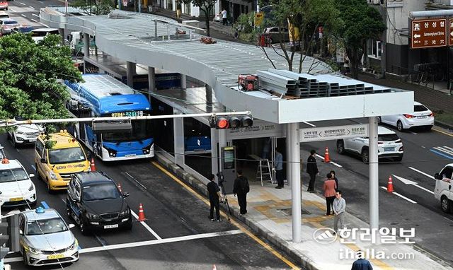제주도는 양문형 버스와 함께 운영되는 섬식 정류장 공사 과정에 인도 폭 축소와 가로수 이식을 최소화했다고 설명했다. 특히 대중교통 이용객들에게 빠르고 안전한 환승 환경을 제공하게 됐다고 강조했다.