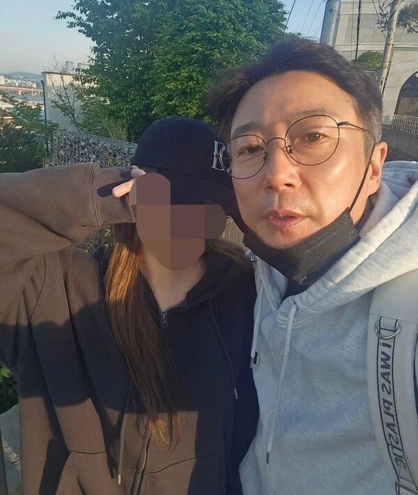 사진 속 박지연은 후드집업을 입고 검은색 캡모자를 썼다. 이수근은 회색 후드티를 입고 얇은 테두리의 안경을 썼다.
