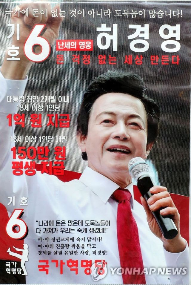 그는 2007년 제17대 대선에 출마했을 당시 “대통령이 되면 박근혜 전 한나라당 대표와 결혼하기로 했고 조지 부시 대통령 취임 만찬에 한국 대표로 참석했다”고 허위 사실을 유포해 이듬해 대법원에서 징역 1년 6개월을 확정받은 전력도 있었다. 이때도 허 대표는 피선거권을 상실해 18~19대 대선은 출마할 수 없었다.