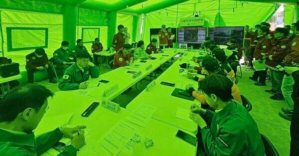 이번에 산불현장통합지휘본부는 산림청 중앙산림재난상황실에서 제공하는 산불상황도, 산불확산예측도를 기초로 산림청, 지자체, 행안부, 소방청, 경찰청, 군, 기상청, 국가유산청 등이 모여 수시로 상황판단회의를 개최했다.