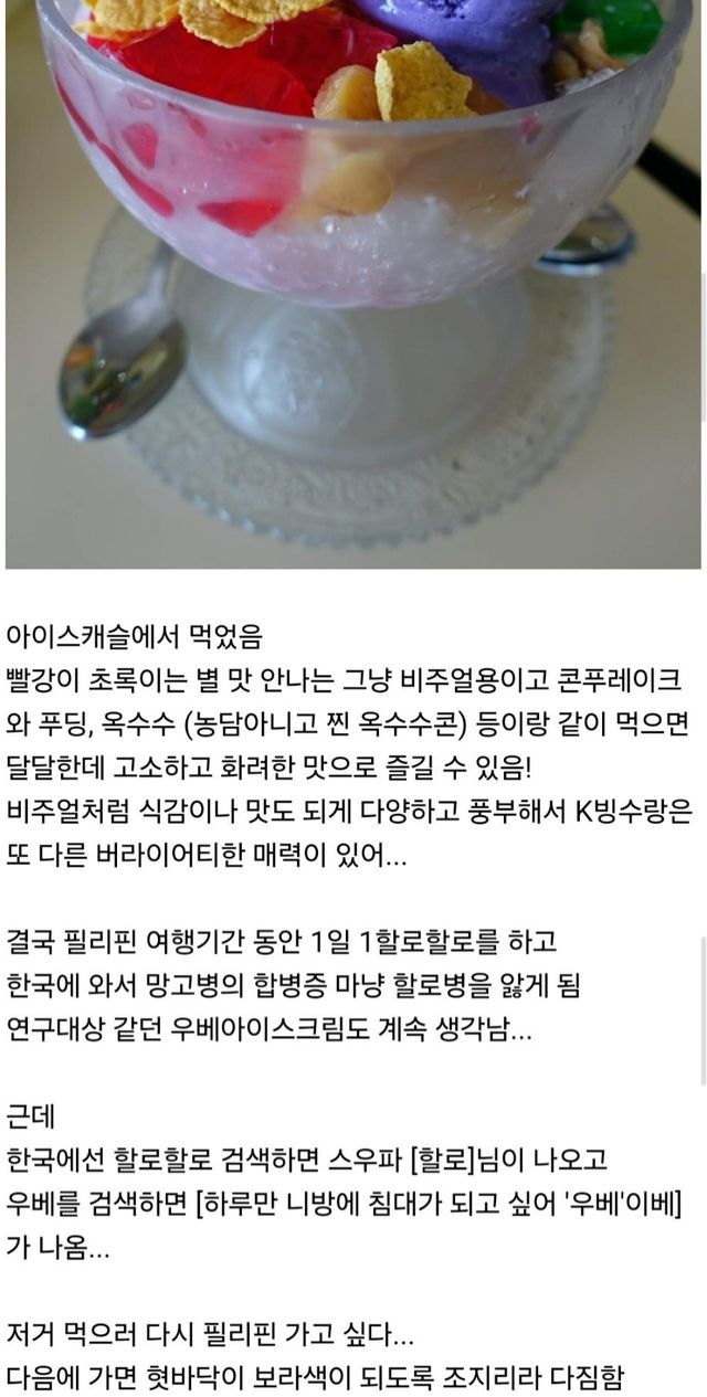필리핀에 가면 한 번쯤 볼 수 있는 보라색 빙수