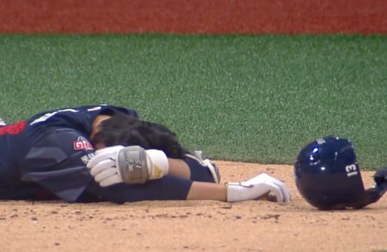 하지만, 1사 만루 기회에서 타석에 들어선 전민재에게 불운이 찾아왔다. 전민재는 바뀐 투수 양지율이 던진 3구째 공이 얼굴을 향해 날아와 이를 피하고자 했다. 하지만, 140km/h 투심 패스트볼이 전민재의 얼굴 부근을 강타했다. 헬멧에 먼저 맞고 얼굴에 큰 충격을 받은 전민재는 곧바로 쓰러진 채 일어나지 못했다. 응급 치료 뒤 앰뷸런스가 급하게 그라운드로 들어왔다. 전민재는 얼굴 부위에 아이싱을 한 채 앰뷸런스에 탑승해 곧장 구장 근처에 있는 구로고대병원으로 이동했다. 양지율은 헤드샷 퇴장으로 마운드에서 물러났다.