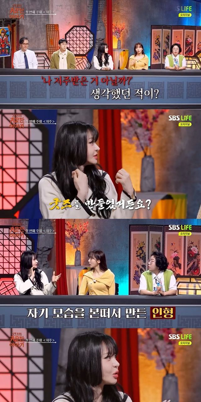 서유리는 "저도 '저주받았구나' 생각을 했던 게 굿즈를 만들었다. 제 모습을 딴 인형을 100개로 만들었다. 팬클럽 친구들에게 선물을 주거나, 일부는 판매하려고 만들었는데 고이 모셔서 창고에 넣어놨다"고 말했다.