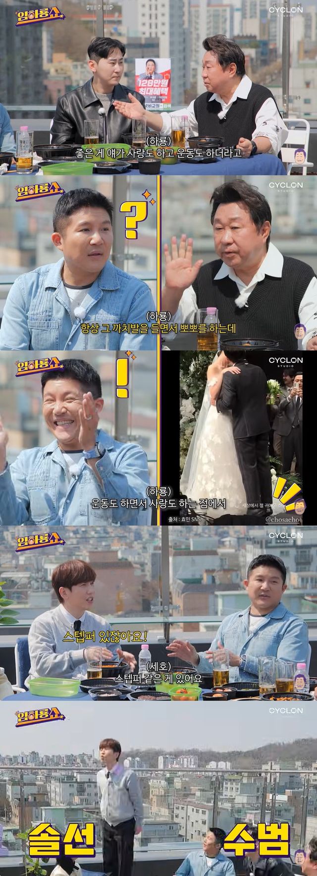 임하룡이 운동을 언급한 건 다름 아닌 조세호와 조세호 아내의 키 차이 때문이라고. 임하룡이 "항상 까치발을 들면서 뽀뽀를 하는데, 운동도 하면서 사랑도 하는 점에서"라고 덧붙이자 조세호는 아내와의 달달한 일상을 언급했다.