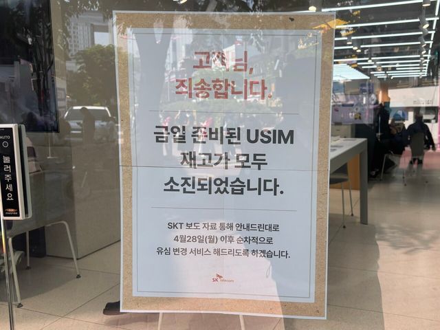 유심을 교체하기 위해 대리점 앞이 북적일 것이라는 예상과 다르게, 문 앞에 늘어선 사람들의 행렬은 길지 않았다.