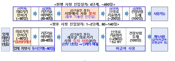 지금까지 정부는 의료기기 산업 활성화 및 우수한 의료기술의 시장 조기진입을 위해 신의료기술평가 유예 제도 등을 도입했지만 절차가 복잡하고 오랜 시간이 소요되어 우수한 의료기술을 조기에 시장에 도입하고 활용하는 데 어려움이 존재했다.