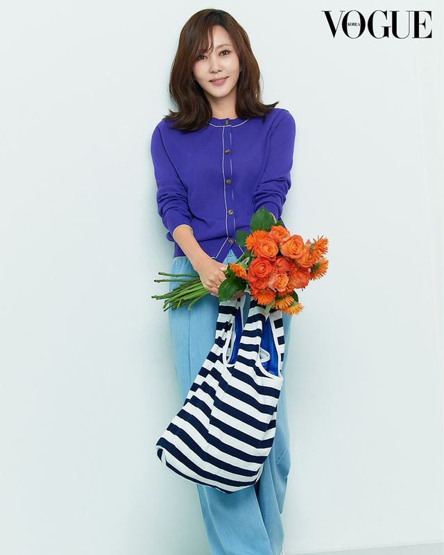 화보 속 김남주는 스탬프 그래픽으로 하트와 아이잗바바 로고가 프인트된 티셔츠와 A라인 스커트에 오렌지 컬러 니트 가디건과 셔츠형 데님 재킷으로 편안한 무드의 데일리룩을, 퍼플 컬러 가디건과 와이드핏 데님 팬츠, 그리고 스트라이프 패턴의 리버시블 백을 매치해 고급스러운 캐주얼 룩을 완성했다.