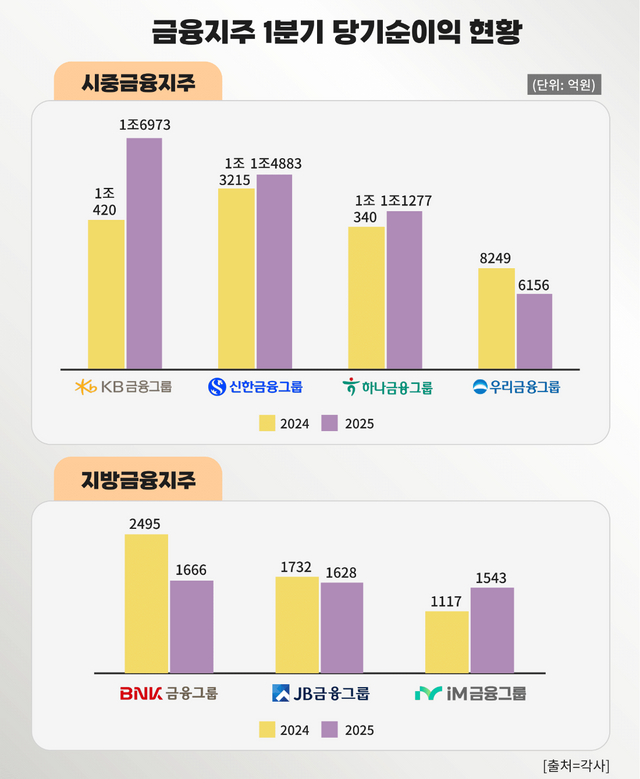 올해 1분기 지방금융지주사들이 잇따라 부진한 성적표를 받아들며 금융업계에 경고등이 켜졌다. 부산·경남을 기반으로 한 BNK금융지주와 전북·광주권 중심의 JB금융지주는 충당금 증가와 지역 경기 침체의 직격탄을 맞으며 실적이 급감했다. 반면, 수도권을 기반으로 한 주요 시중 금융지주사들은 안정적인 성장세를 유지하고 있다.
