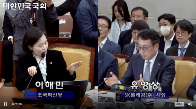 이해민 조국혁신당 의원이 30일 과학기술정보방송통신위원회 방송통신 분야 청문회에서 유심(USIM) 해킹 사태와 관련해 "주말부터 SKT 가입자들은 해외여행을 어떻게 가겠느냐. (해킹 사태로 인해) 불편 겪는 고객 없도록 해야 한다"고 지적한 데 따른 답변이다.
