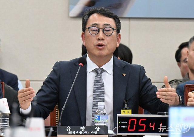 유영상 SK텔레콤 대표이사가 30일 국회 과학기술정보방송통신위원회의에서 열린 방송통신 분야 청문회에서 유심 해킹 사태에 대한 의원들의 질의에 답변하고 있다. 사진=이수길 기자 Leo2004@newsway.co.kr