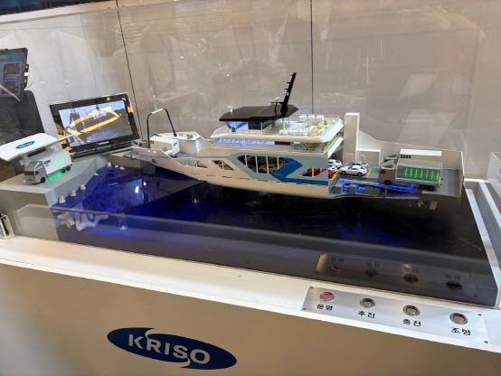 KRISO 부스에서 만난 김영식 KRISO 친환경 연료 추진 연구센터장은 “한국 바다는 조수 간만의 차가 크고, 태풍 등 기상재해가 많아 항만에 충전 시설을 두는 것보다, 선박에 자동차 형태의 배터리를 싣고 이를 육상에서 충전하는 방법을 연구했다”고 설명했다.