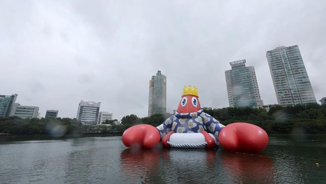 앞서 지난해 9월 롯데물산은 롯데월드몰 개장 10주년을 기념해 약 16m 높이의 대형 랍스터 벌룬을 띄웠다. 이 작품은 '플로팅 랍스터 킹'으로, 달걀부침 패턴의 파란색 셔츠를 입은 랍스터가 왕관을 쓴 채 튜브를 타고 있는 모습을 연출했다.
