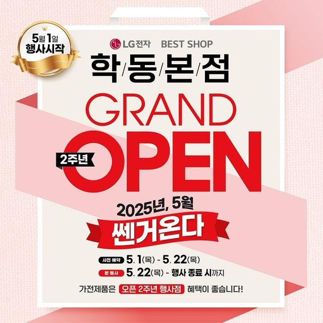 매장 관계자는 “LG전자 베스트샵 학동본점은 지난 2년간 지역 고객들의 성원에 힘입어 프리미엄 가전 전문 매장으로 자리매김해 왔다”며 “이번 2주년 행사는 그동안 보내주신 관심에 보답하는 자리로, 혼수·이사 고객은 물론 최신 가전을 고민 중인 소비자에게 최적의 기회가 될 것”이라고 밝혔다.
