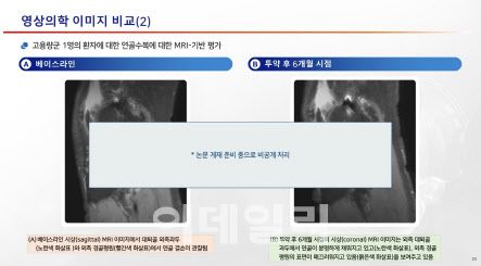 이날 강스템바이오텍은 MRI 이미지 데이터를 공식적으로 공개하진 않겠다는 방침이었으나 해당 행사 참석자들에 한해 질의응답 시간에 사진 촬영을 하지 않는 전제로 일부 공개했다. 해당 데이터에 대한 공개는 5월 중 논문 초안 검토 이후 이뤄질 전망이다. 나종천 강스템바이오텍 대표는 “고용량군에 대한 MRI 데이터가 5월이면 저희 손에 들어오고 그 부분을 발표할 수 있게 될 것”이라며 “이 결과와 그 결과 전에 발표됐던 내용을 포함한 데이터를 근거로 글로벌 진출의 교두보로 삼을 것”이라고 말했다.
