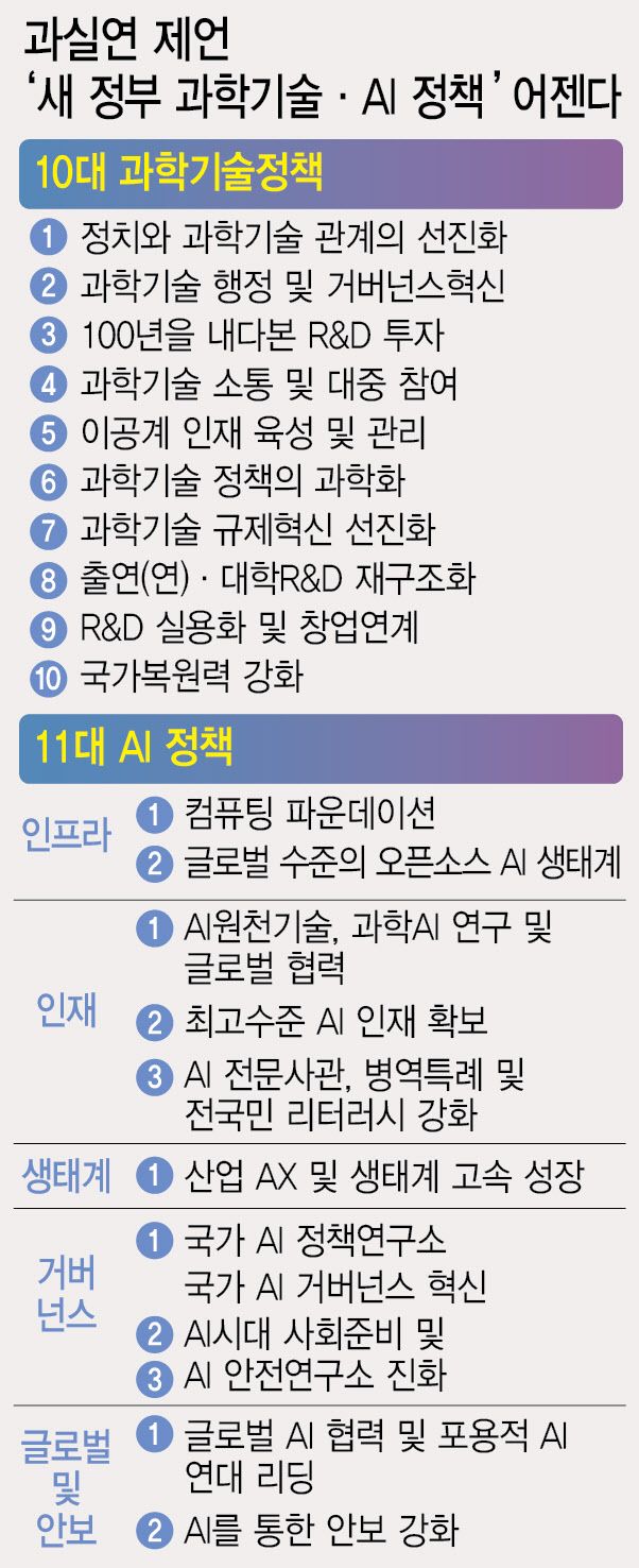 과실연 측은 “AI 및 과학기술 경쟁이 국가의 미래를 좌우하는 상황에서 명확한 책임 구조와 전략적 투자 체계가 절실하다”며 “새 정부가 실질적인 변화와 구조적 전환을 이끌어야 한다”고 강조했다.