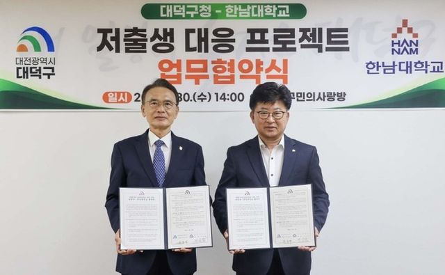대덕구는 30일 한남대학교와 저출생 대응 프로젝트 운영을 위한 업무협약을 체결했다고 밝혔다.