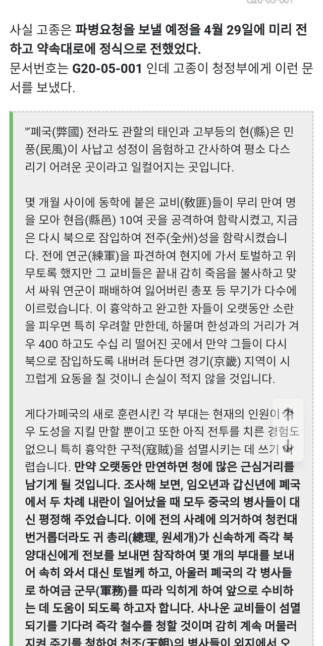 고종은 청군 불러온적 없다는 날조에 빡친 박사가 논문퍼레이드했다는게 학계 정설
