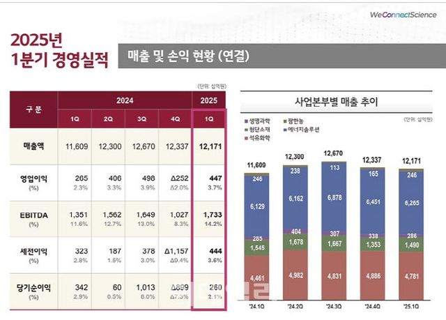 특히 석유화학 부문은 매출 4조7815억원, 영업손실 565억원을 기록했다. 회사 측은 대산공장 정전과 전력 단가 상승 등 수익성 악화 요인이 있었지만, 비용 절감 노력과 환율 강세 효과로 적자폭을 줄였다고 설명했다.