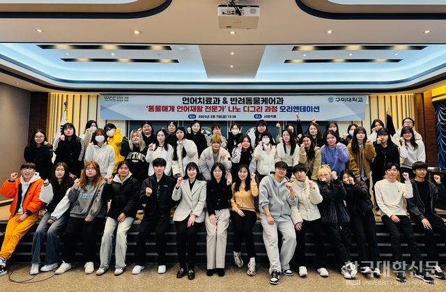 [한국대학신문 이정환 기자] 구미대학교(총장 이승환) 언어치료과와 반려동물케어과가 융합과정을 운영해 눈길을 끌고 있다.