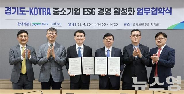 (뉴스영 이현정 기자) 경기도는 30일 경기도청 서희홀에서 대한무역투자진흥공사(KOTRA)와 ‘중소기업 ESG(환경·사회·지배구조) 경영 활성화’를 위한 업무협약을 체결했다.