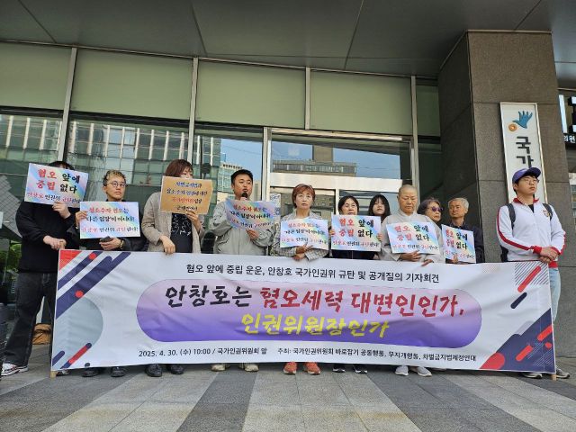 그는 "내란 사태에 입을 닫고 내란수괴를 옹호해 '내란옹호위원회' 오명을 쓴 인권위는 이제 반동성애, 차별조장위원회로 몰락하고 있다"고 지적했다. 그러면서 "이 모든 일을 초래한 안창호, 그리고 내란을 옹호하고 차별에 눈감은 인권위원들은 즉각 사퇴하라"고 했다.